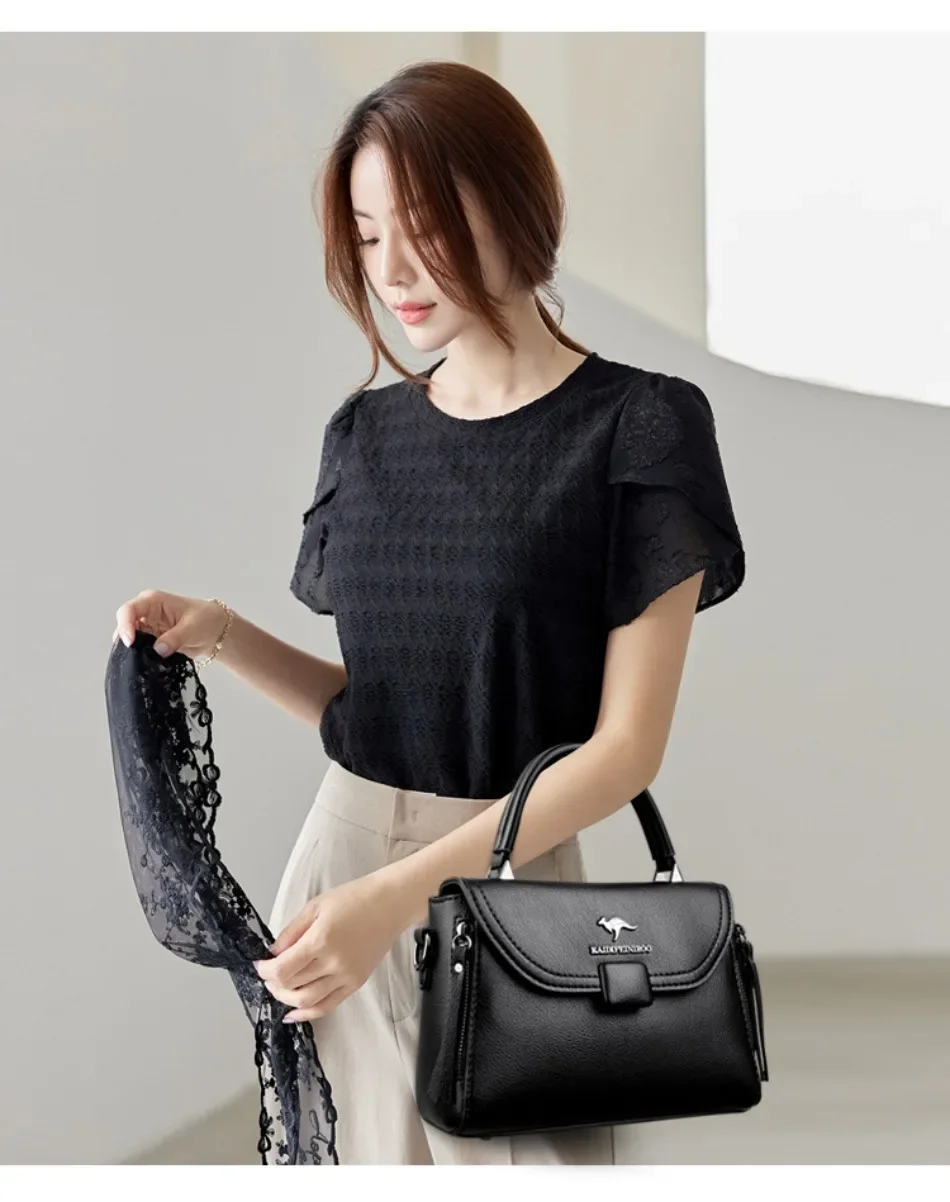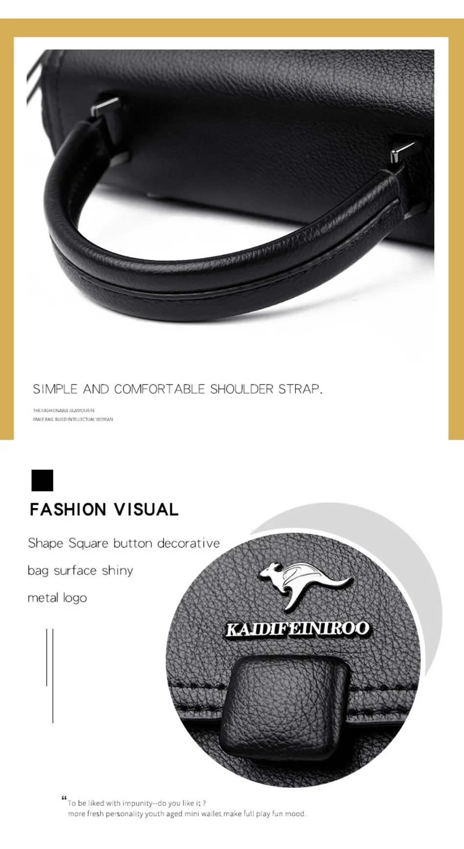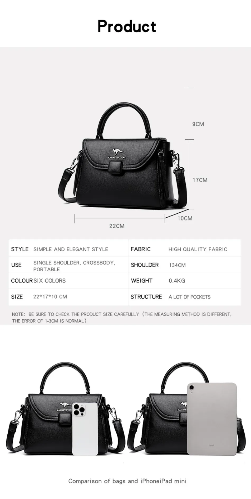 ছাড়Luxury Designer Fashion High Quality Leather Kangaroo Handbag (Black)