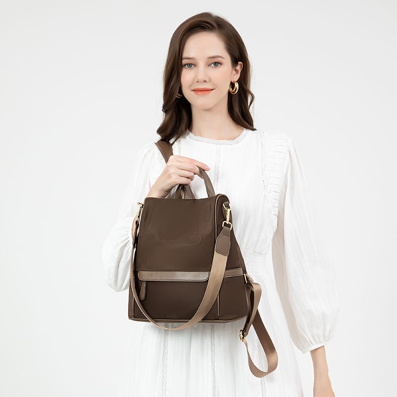 ছাড়New Design Women Backpack Nylon Waterproof Anti-Theft Travel Bagpack(Coffee)