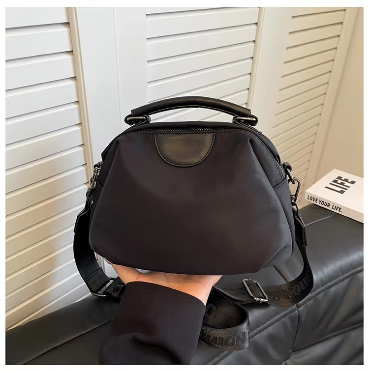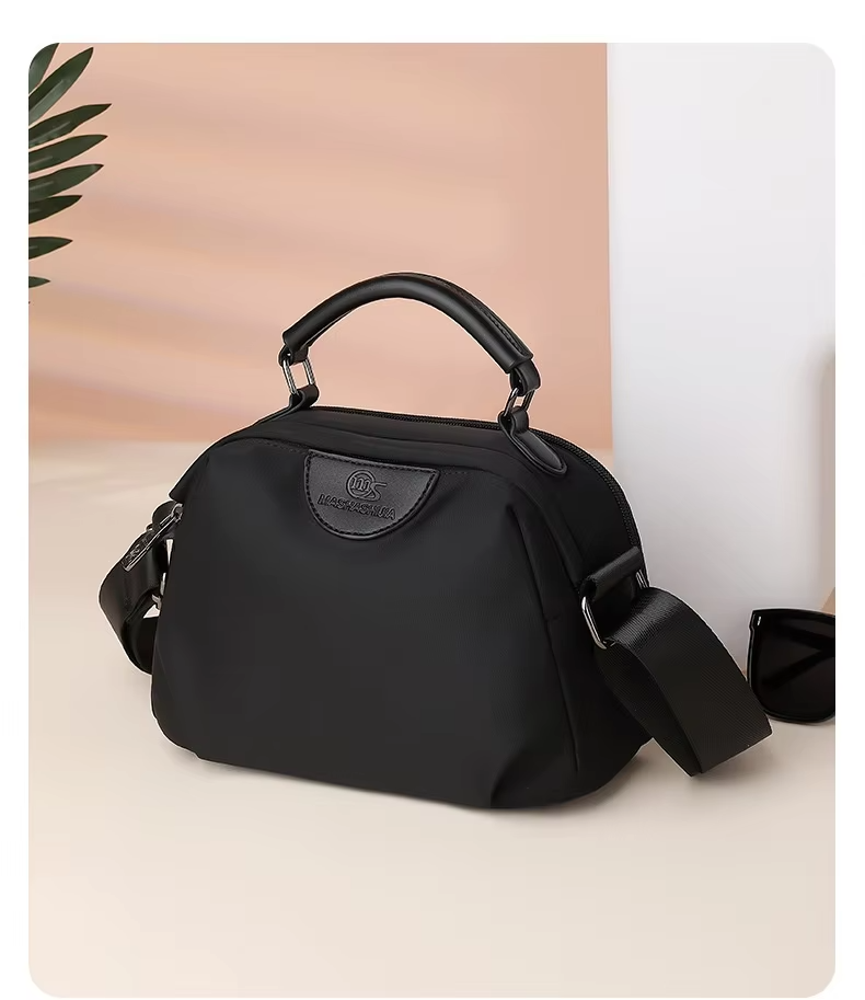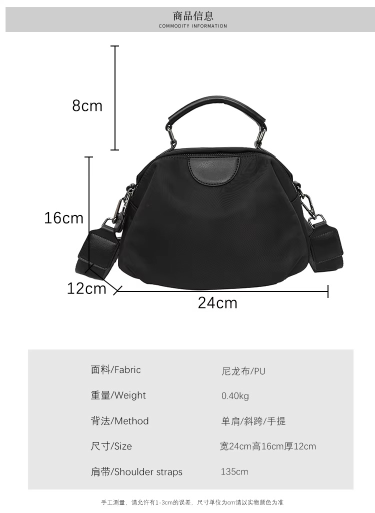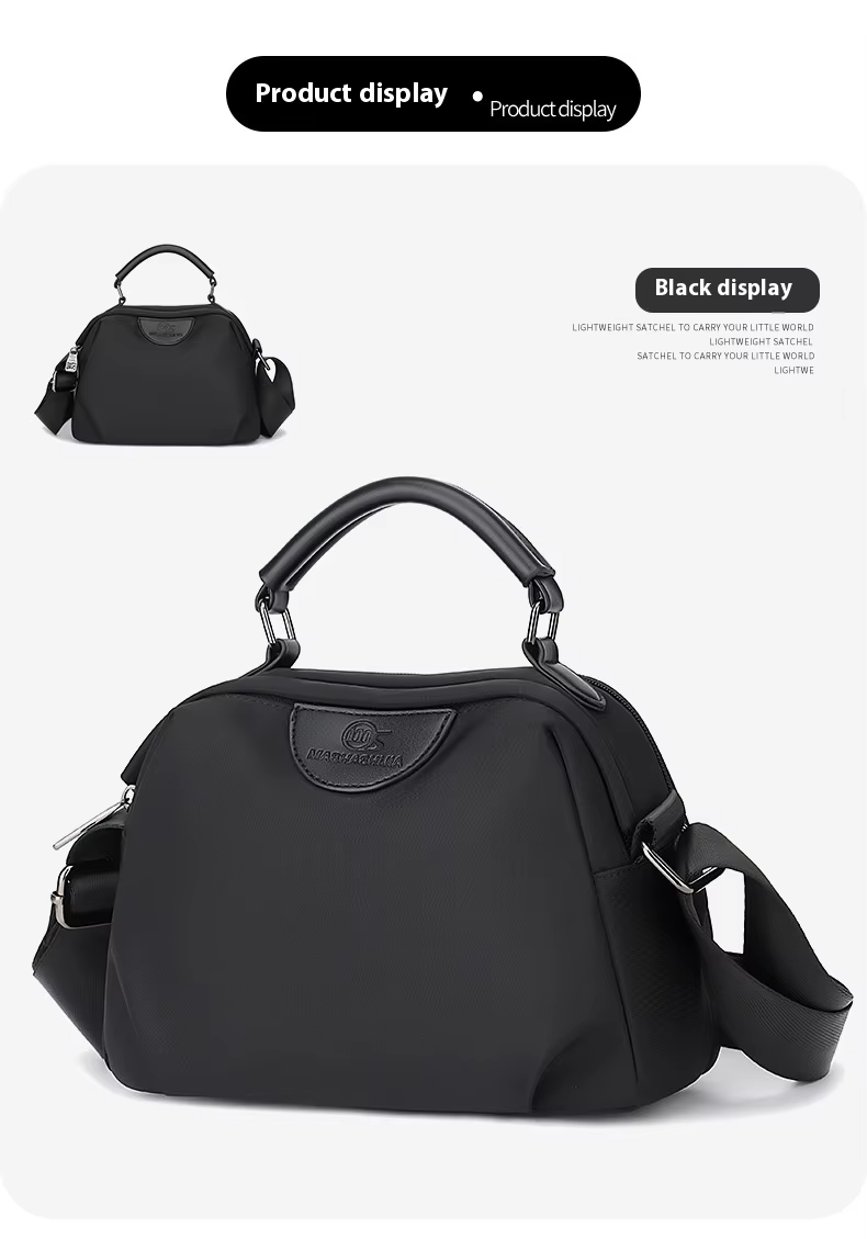 ছাড়New Portable Nylon Cloth with Cowhide Shoulder Bag(Black)